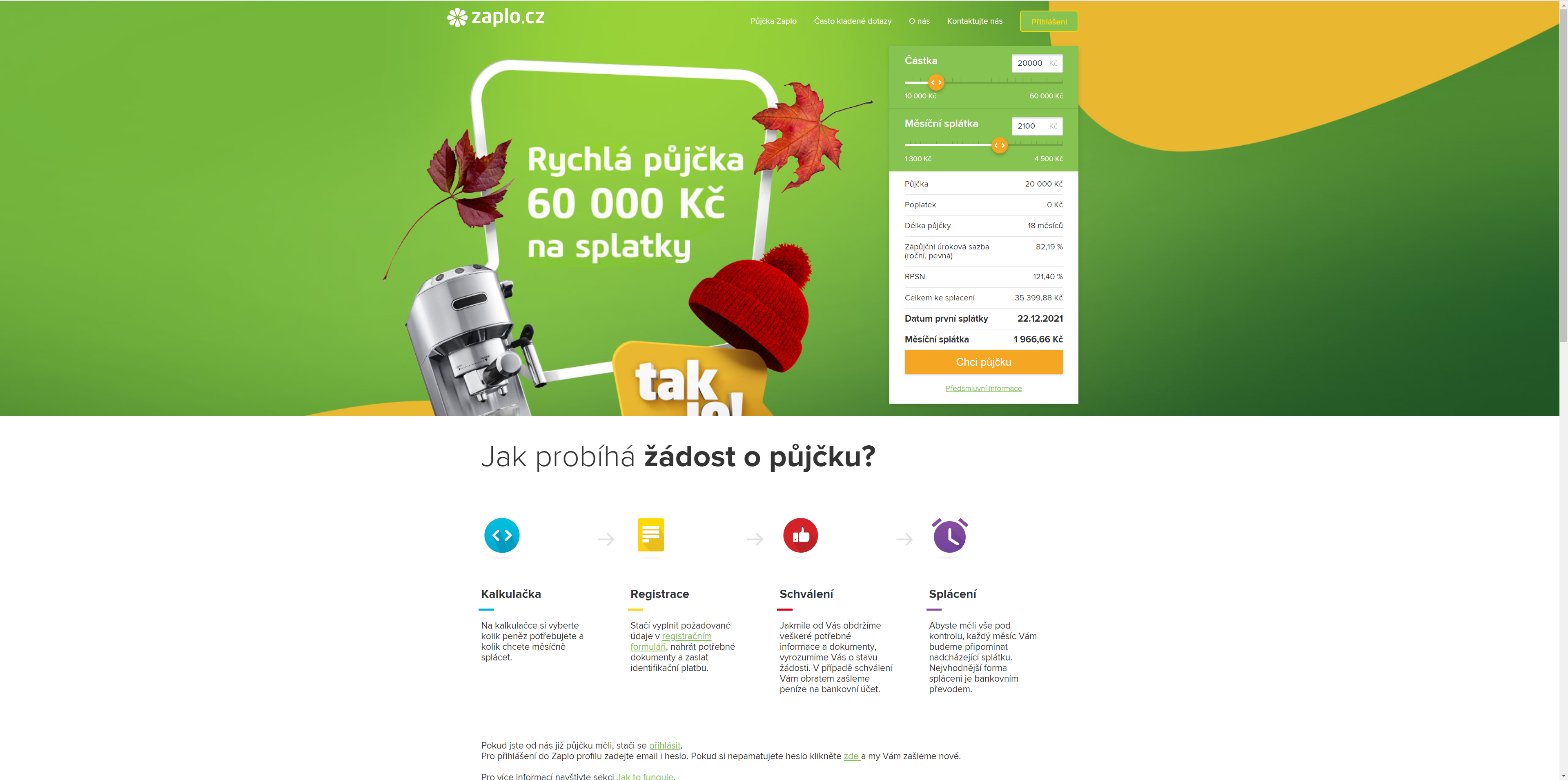 Pokud vás zastihnou menší výdaje, s nimiž se dokážete vypořádat najednou, nabízí Zaplo také svůj mikroúvěr. V jeho rámci si můžete říct až o 16 000 Kč zdarma, což je jedna z nejvyšších hranic na českém trhu.